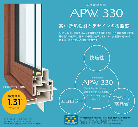 結露もしづらく、快適な暮らし。樹脂+Low-E複層ガラスがアルゴンガス封入で、国内最高レベルの断熱性を実現するAPW330を採用。