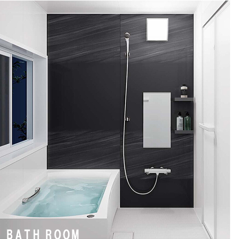 快適さと省エネ性能で差のつく浴室&高品質な洗面化粧台。省エネ性とお掃除のしやすさに配慮した浴室は、どんな季節にも快適な入浴を実現。洗面化粧台も使い勝手にすぐれた機能的なデザインを採用しました。
