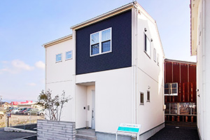 山陰ハウジングプラザ内のモデルハウスです。外観はシンプルで落ち着きを感じる印象に仕上ました。