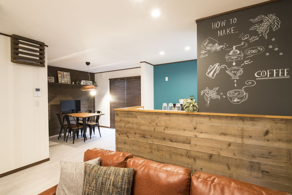 落ち着くヴィンテージスタイルの中にDIYの遊び心を取り入れました。まるでカフェのようで、オシャレな雰囲気です。