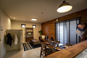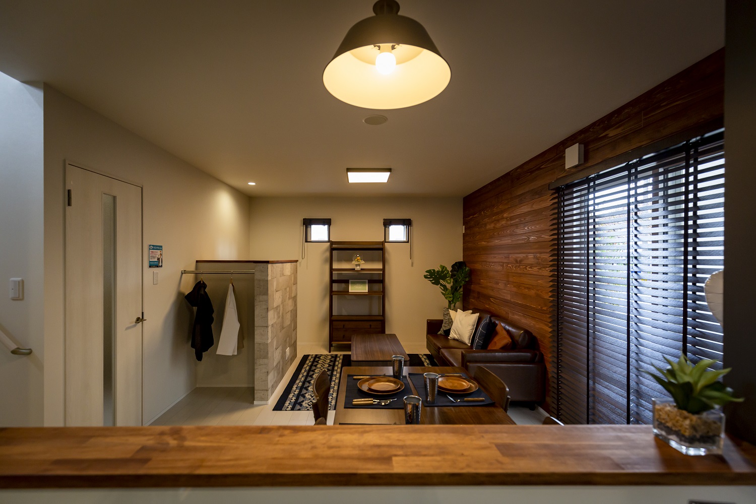 スタイリッシュな外観から、一歩足を踏み入れるとオシャレなヴィンテージスタイル。空間を広く使った吹き抜けや大収納が特徴的で、造作の洗面台がアクセントに。解放感と暮らしやすさを両立させたオシャレな住宅です。
