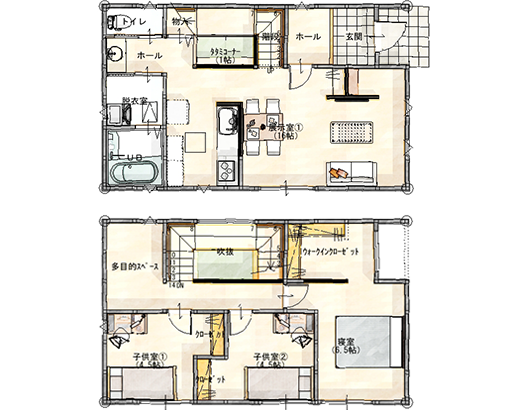 和室の上部は吹き抜けに♪コミュニケーションもしやすく、開放的と大人気♪